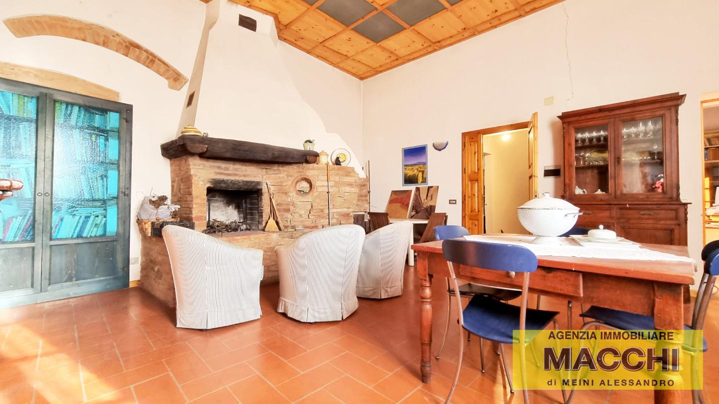 questa unità abitativa necessita di alcuni lavori di ripristino ma ha alcune belle pecularietà tipiche della tipologia rustica toscana, quale forno e camino a mattoni nel reparto giorno e cotto originale nella pavimentazione della camera; la terrazza completa questa parte abitativa.